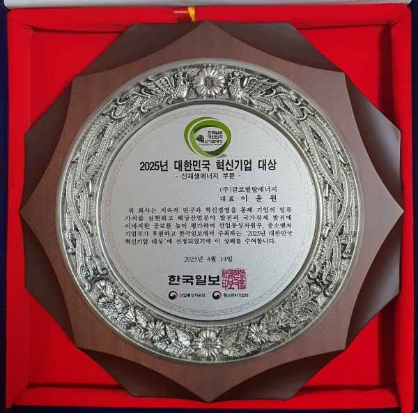 - 이전글헤럴드경제 주최 주식회사 글로벌탑에너지- "2025년대한민국혁신기업(기관-인물)-브랜드(환경에너지 부문) 대상"_수상-상패-헤럴드미디어그룹-2025-05-16 25.07.11